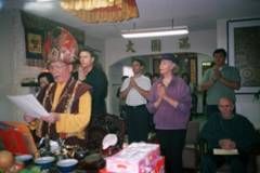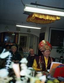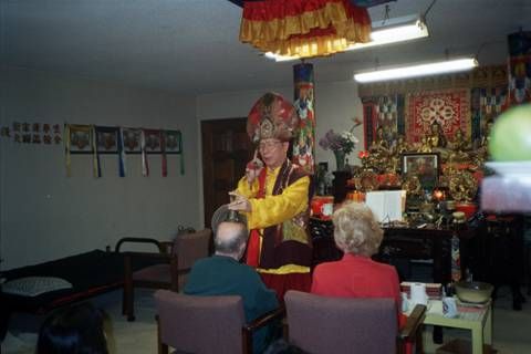 第四次的法會,法王應梅爾芬夫人邀請,到他府上專壇超渡、拔渡、救渡六道眾生,清除家裡的魔障及惡障,使居家住處得以清淨。 |  |  |