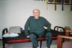 法王並且答應他,六次法會就可以讓腦部清醒無障礙,智慧具足,行動言語自如。 | 第二次加持除障後,梅爾芬先生終於自己站起來啦!看,妙哉! | 第二次法會後,梅爾芬先生終於自己站起來走路,不需別人扶持,在場信眾歡心拍手叫好,法王內證功德力與佛菩薩加持力,真是不可思議!也印證法王的承諾,為歷史留下殊勝的見證。 |
